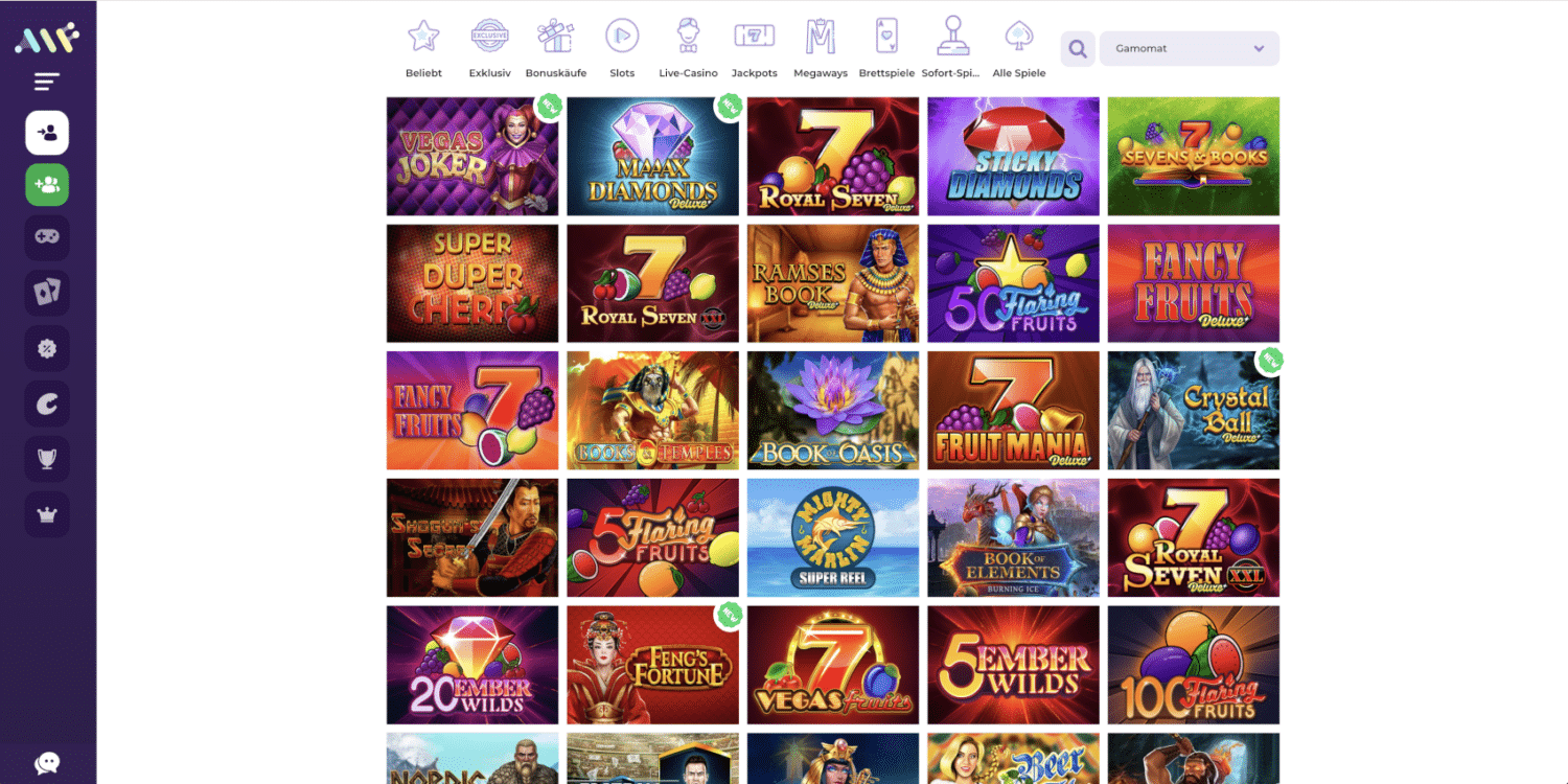 Das Alf Casino beweist mit seiner riesigen Spielauswahl, dass es zu Recht als eines der besten Online Casinos gilt. Egal ob Sie ein Fan von Slots, Tischspielen oder Live-Casino-Action sind – hier finden Sie garantiert Ihr neues Lieblingsspiel. Tauchen Sie ein in die bunte Welt des Alf Casinos und entdecken Sie die unzähligen Möglichkeiten, die auf Sie warten!