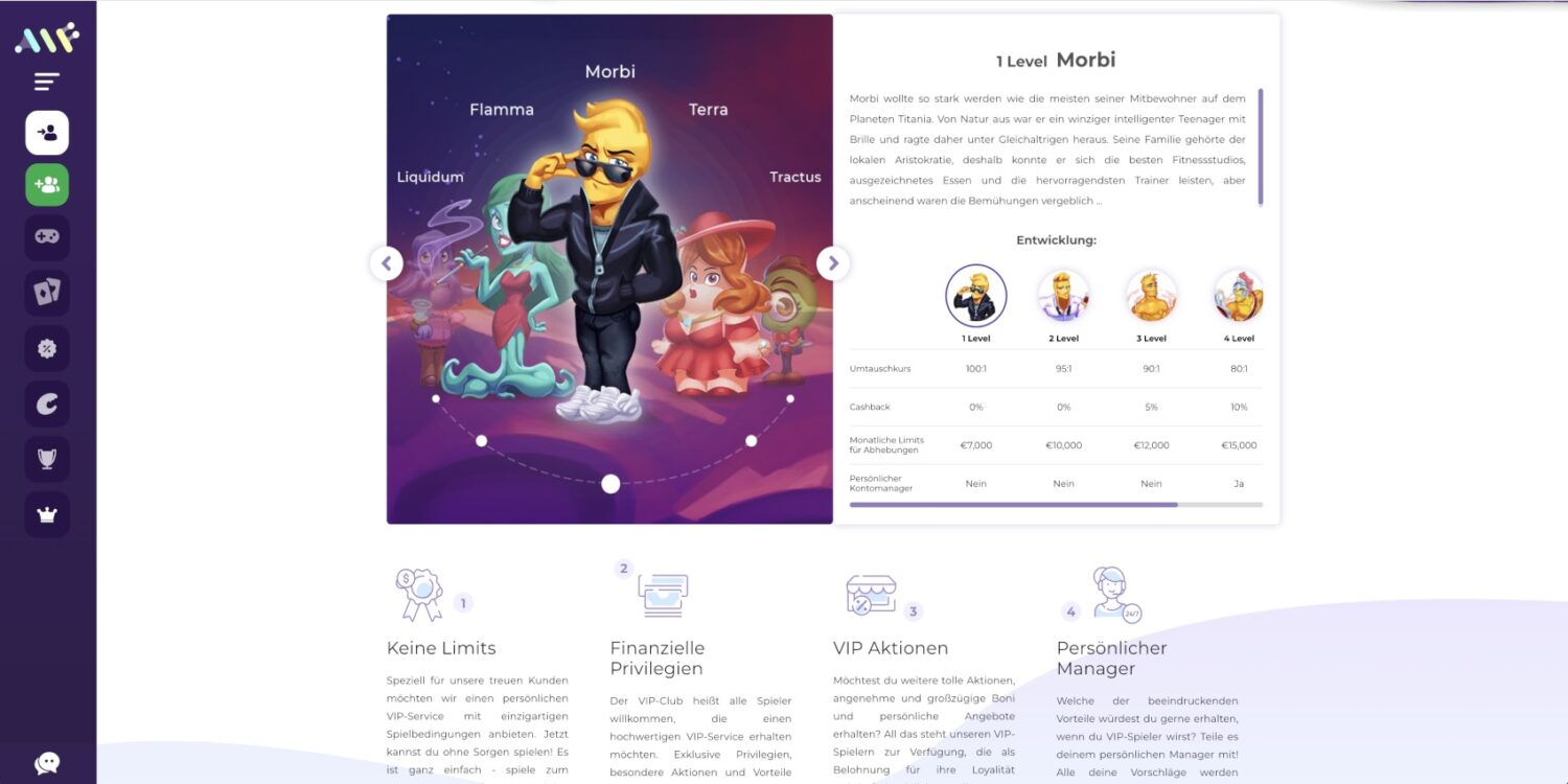 Das VIP-Programm bietet exklusive Vorteile wie verbesserte Umtauschkurse für Treuepunkte, höhere Cashback-Prozentsätze und gesteigerte Auszahlungslimits. Top-VIPs genießen zudem den Service eines persönlichen Account Managers.