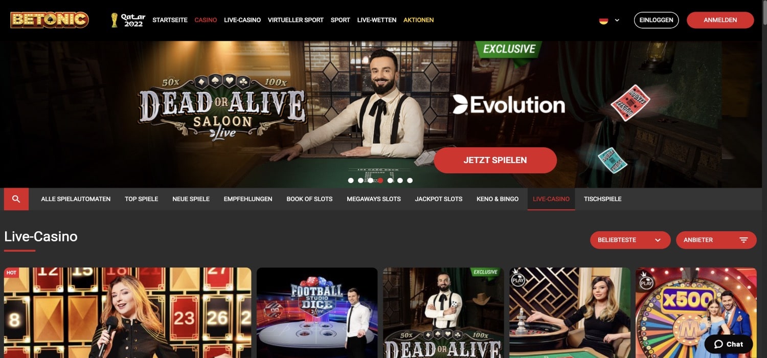 Das Live Casino Deutschland bei Betonic zeigt sich dann aber wieder von der besten Seite, wie unsere gesammelten Betonic Casino Erfahrungen zeigen. Hier werden zahlreiche Topspiele in eine echte Spielcasino-Atmosphäre mit Croupiers und Moderatoren übertragen und die steigende Popularität des Live Casinos beweist nachhaltig, dass genau diese Elemente von den Spielern derzeit gewünscht werden. Die beliebtesten Games im Betonic Live Casino sind:
