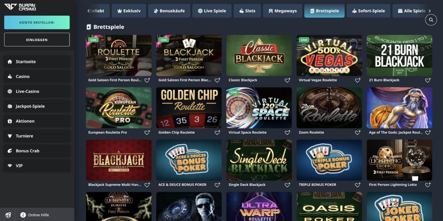 Das umfangreiche Spielangebot von BuranCasino