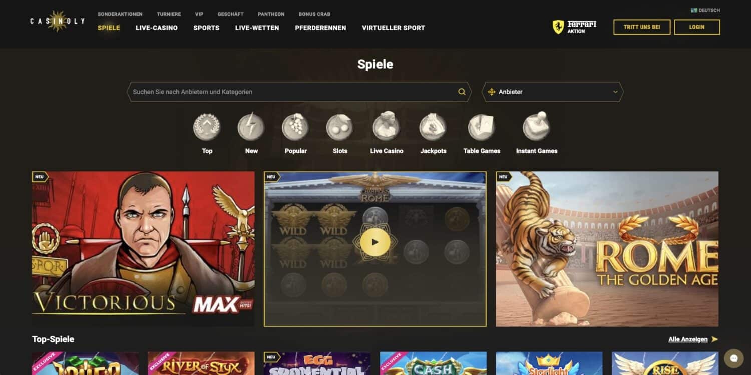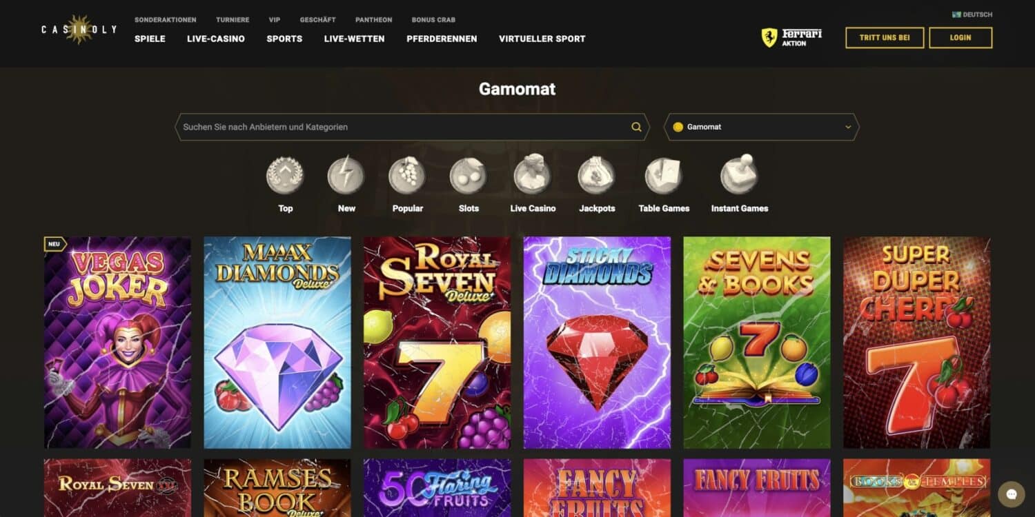Was Casinoly von anderen Plattformen abhebt, ist die schier unglaubliche Vielfalt an Spielen. Mit über 10.000 Titeln findest du hier garantiert deine Favoriten – und entdeckst sicherlich auch spannende Alternativen. Von klassischen Slots bis hin zu den neuesten Videoslots, von traditionellen Tischspielen bis zum aufregenden Live-Casino – hier kommt jeder Spielertyp auf seine Kosten.