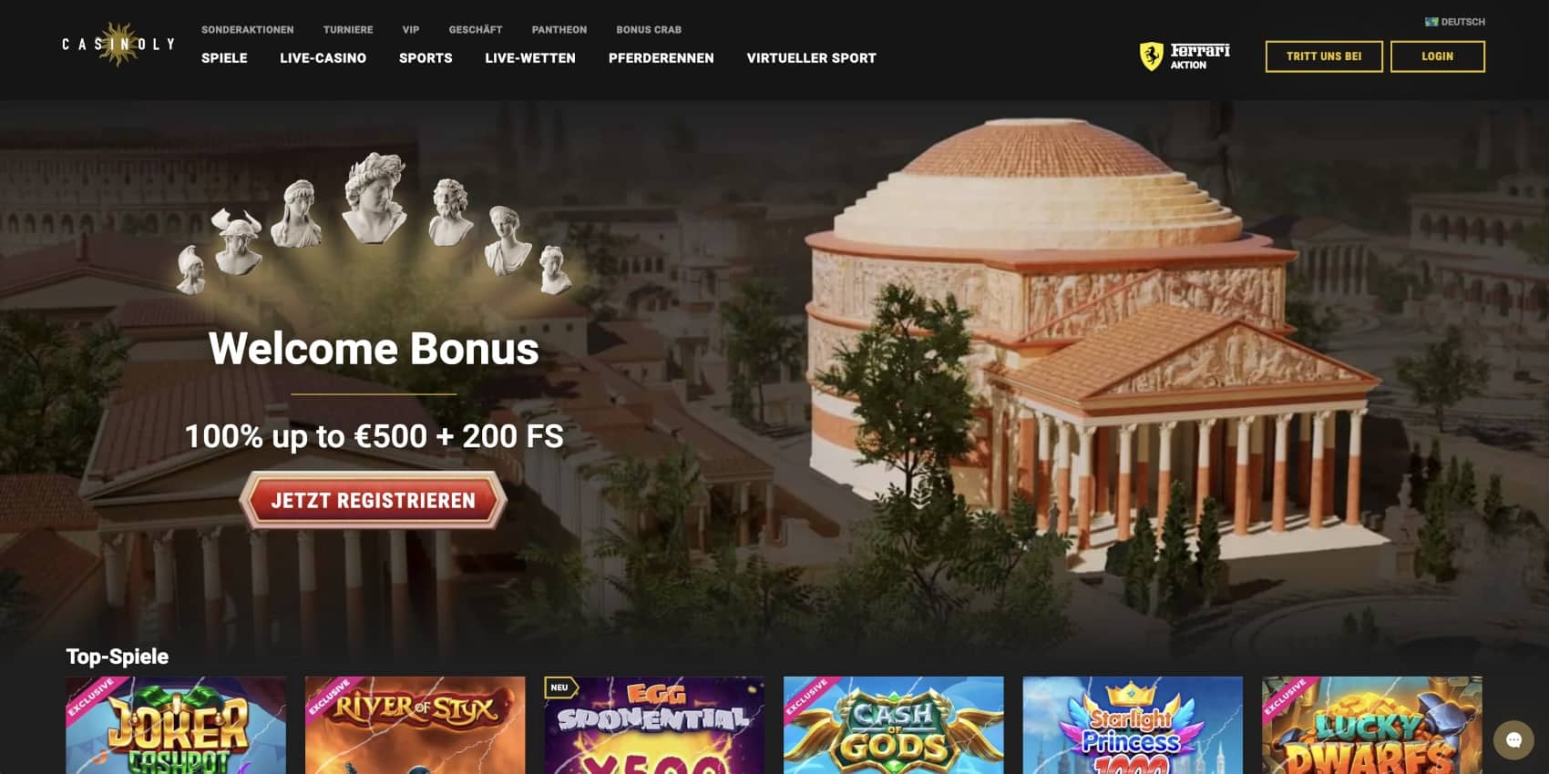 Mit dieser beeindruckenden Spielauswahl bietet Casinoly für jeden Geschmack und jede Vorliebe das passende Spiel. Ob du nun ein Fan von klassischen Slots, spannenden Jackpots, strategischen Tischspielen oder der Interaktion im Live-Casino bist – hier findest du garantiert deine neue Lieblingsbeschäftigung.