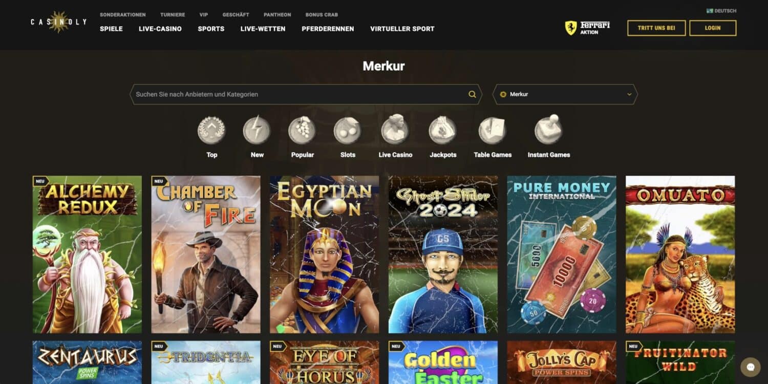 Die Slot-Sektion bei Casinoly ist ein wahres Paradies für Spielautomaten-Enthusiasten. Hier findest du eine breite Palette an Themen, von fruchtigen Klassikern über Wild-West-Abenteuer bis hin zu ägyptischen Mysterien. Besonders hervorzuheben sind die Gamomat und Merkur Slots, die das deutsche Spielgefühl direkt zu dir nach Hause bringen. Beliebte Titel wie „Beer Party“, „Ramses Book“ von Gamomat oder „Eye of Horus“ und „Ghostslider 2024“ von Merkur stehen zur Auswahl.