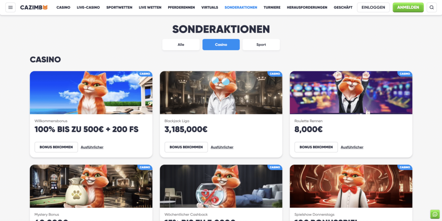 Cazimbo’s vielfältige Bonusangebote und Aktionen stellen sicher, dass treue Kunden immer etwas Neues und Aufregendes erleben können. Von täglichen Promotionen bis hin zu exklusiven VIP-Vorteilen – es lohnt sich, regelmäßig vorbeizuschauen und die zahlreichen Möglichkeiten zu nutzen, das eigene Spielerlebnis zu verbessern und potenzielle Gewinne zu maximieren.