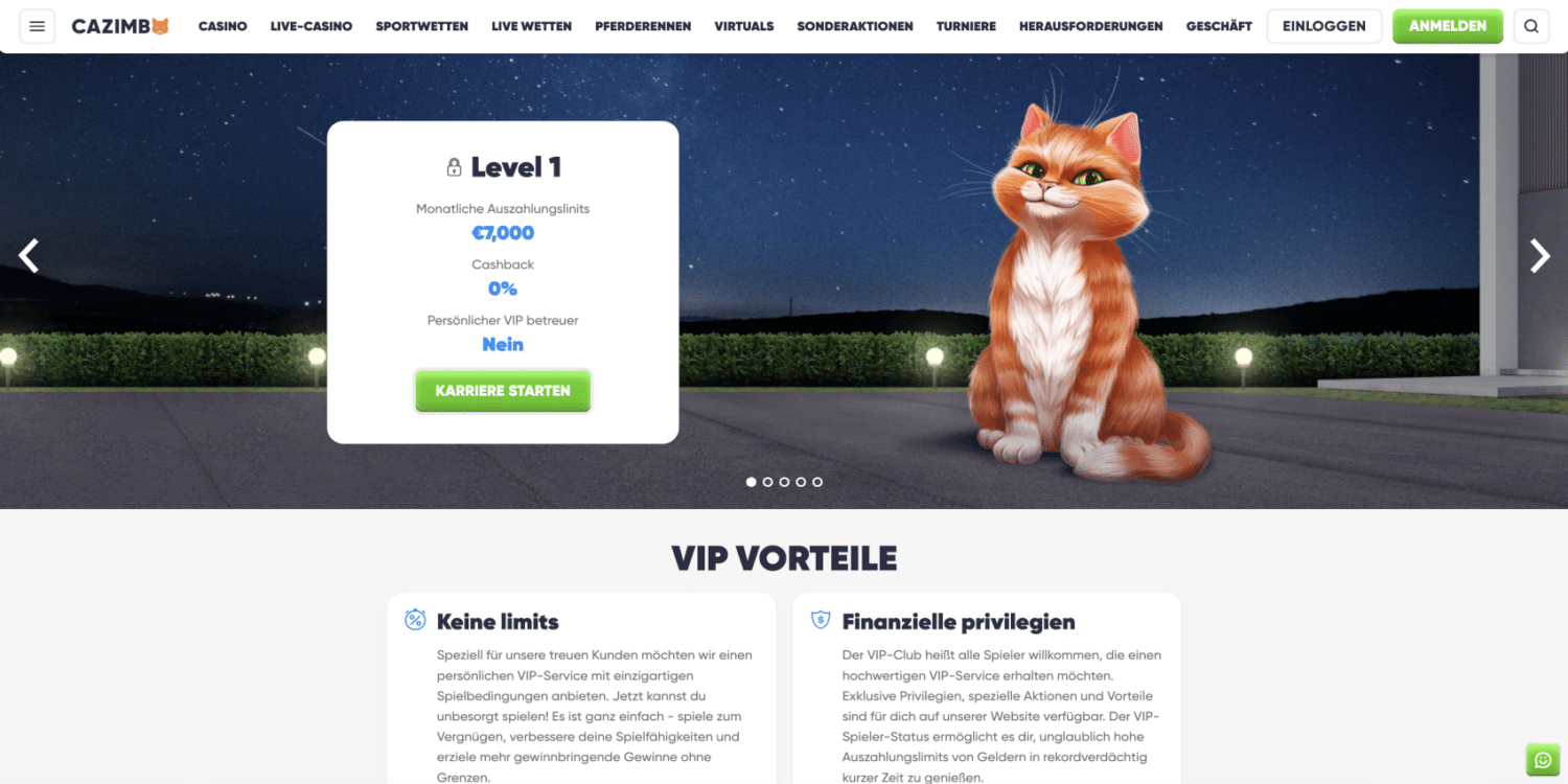 Cazimbos VIP-Programm ist in mehrere prestigeträchtige Level unterteilt, die den Spielern stetige Aufstiegsmöglichkeiten bieten. Jede Stufe bringt zusätzliche Privilegien und Vorteile mit sich, die das Spielerlebnis kontinuierlich verbessern. Die Level reichen vom Krieger bis zur Legende, wobei jede Stufe ihre eigenen einzigartigen Vorteile bietet.