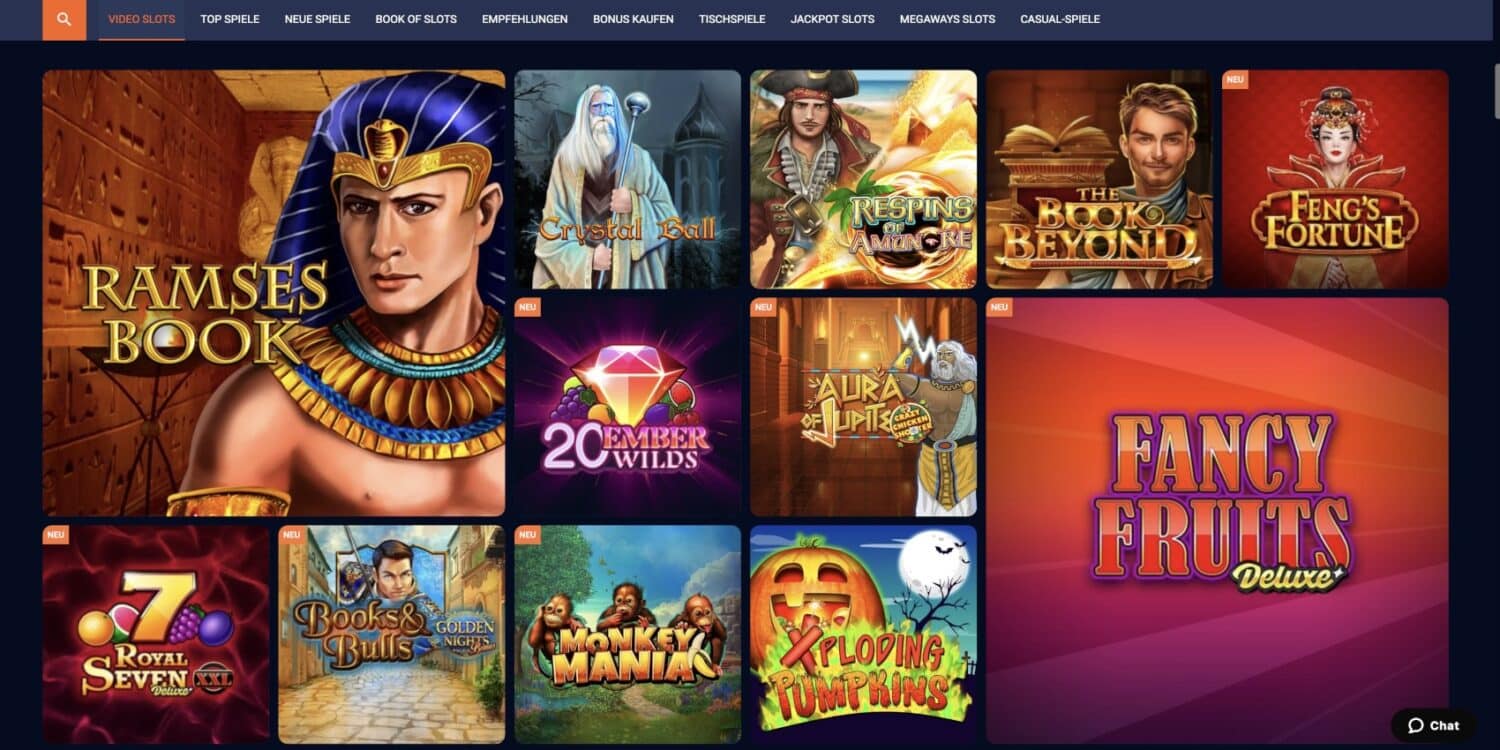 Den Löwenanteil des Spielangebots machen die Slots aus, was angesichts ihrer Beliebtheit im Casinobereich nicht überrascht. Die thematische Bandbreite ist beeindruckend: Von ägyptischen Abenteuern in „Book of Dead Echtgeld“ und „John Hunter and the Book of the Fallen“ bis hin zu klassischen Früchte-Slots wie „Fruit Party“ und „Jazzy Fruits“ ist alles vertreten.