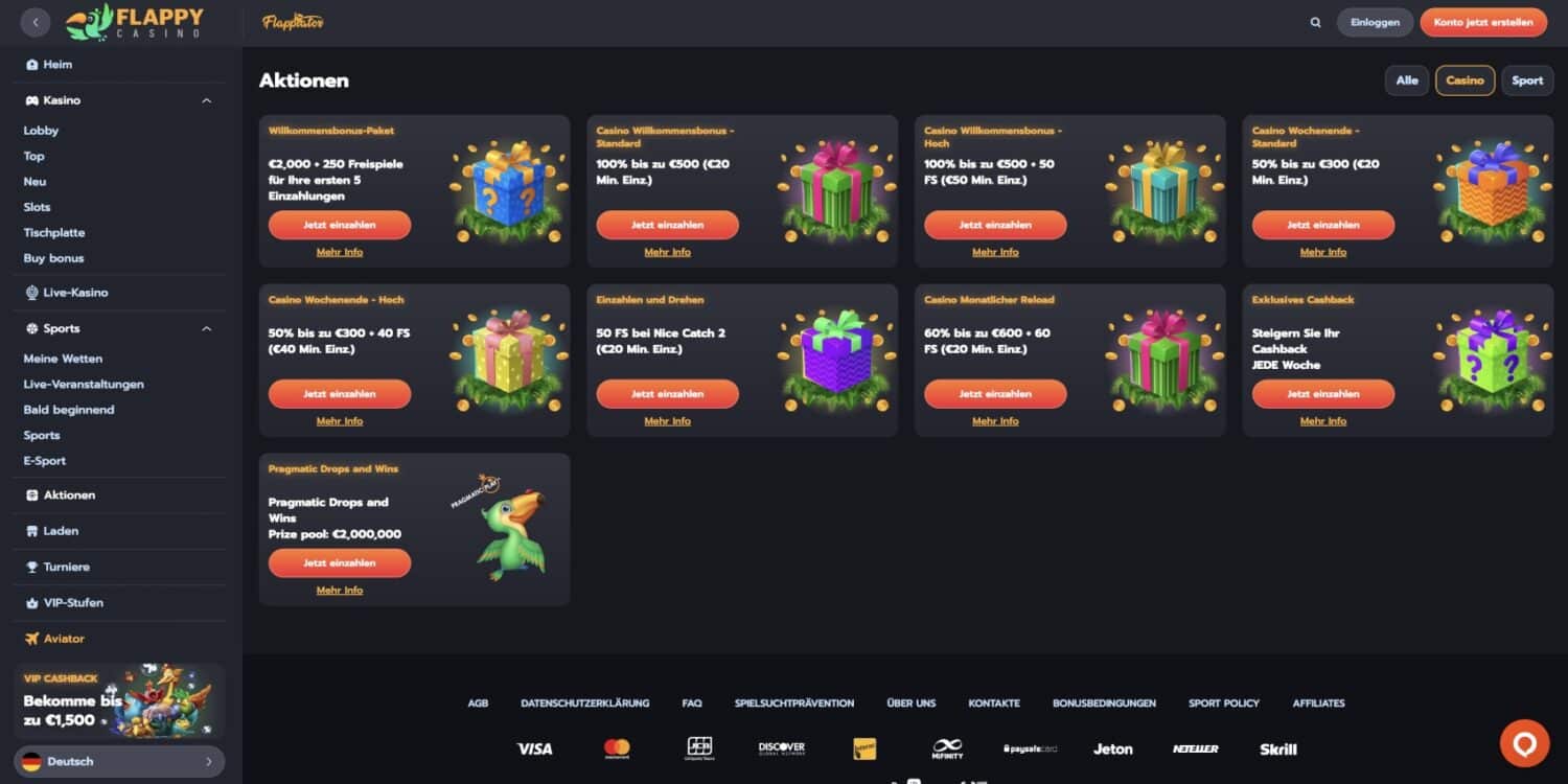 Bonusangebote im Flappy Casino