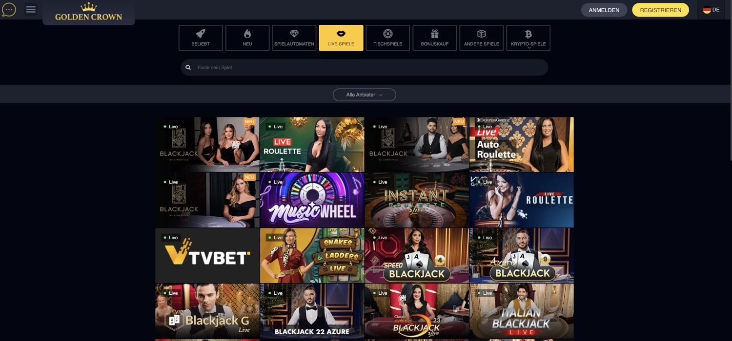 Über 6.000 Games können laut des Betreibers bei Golden Crown gespielt werden. Das ist eine wirklich gigantische Auswahl. Darunter zu finden sind diverse Spielautomaten, Tischspiele, Krypto-Spiele, Live Games sowie weitere Games wie Crash Games, Keno oder Rubbelkarten. Die Auswahl an Software Providern ist mit mehr als 90 gigantisch. NetEnt, Wazdan, Pragmatic Play, Thunderkick oder Betsoft sind nur einige, die darunter zu finden sind.