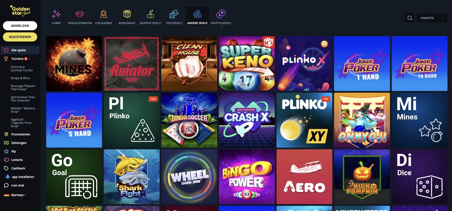 Das Portfolio des Golden Star Casinos umfasst aktuell mehr als 3.000 Casinospiele. Der Großteil liegt hier ganz klar bei den Slots. Wir gehen im Detail auf das Spieleangebot des beliebten Online Casinos ein.