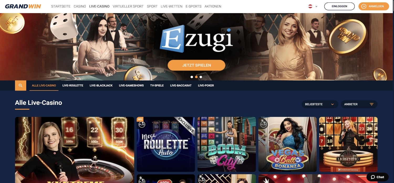 Für viele Spieler ist das Live Casino der absolute Höhepunkt. Zum Glück hat Grandwin auch eine Menge Live Dealer Tische. Sie stammen von neun verschiedenen Herstellern, darunte Evolution Gaming, Lucky Streak und Pragmatic Play. Lesen Sie weiter, um zu erfahren, welche Spiele und Varianten Sie erwarten können.