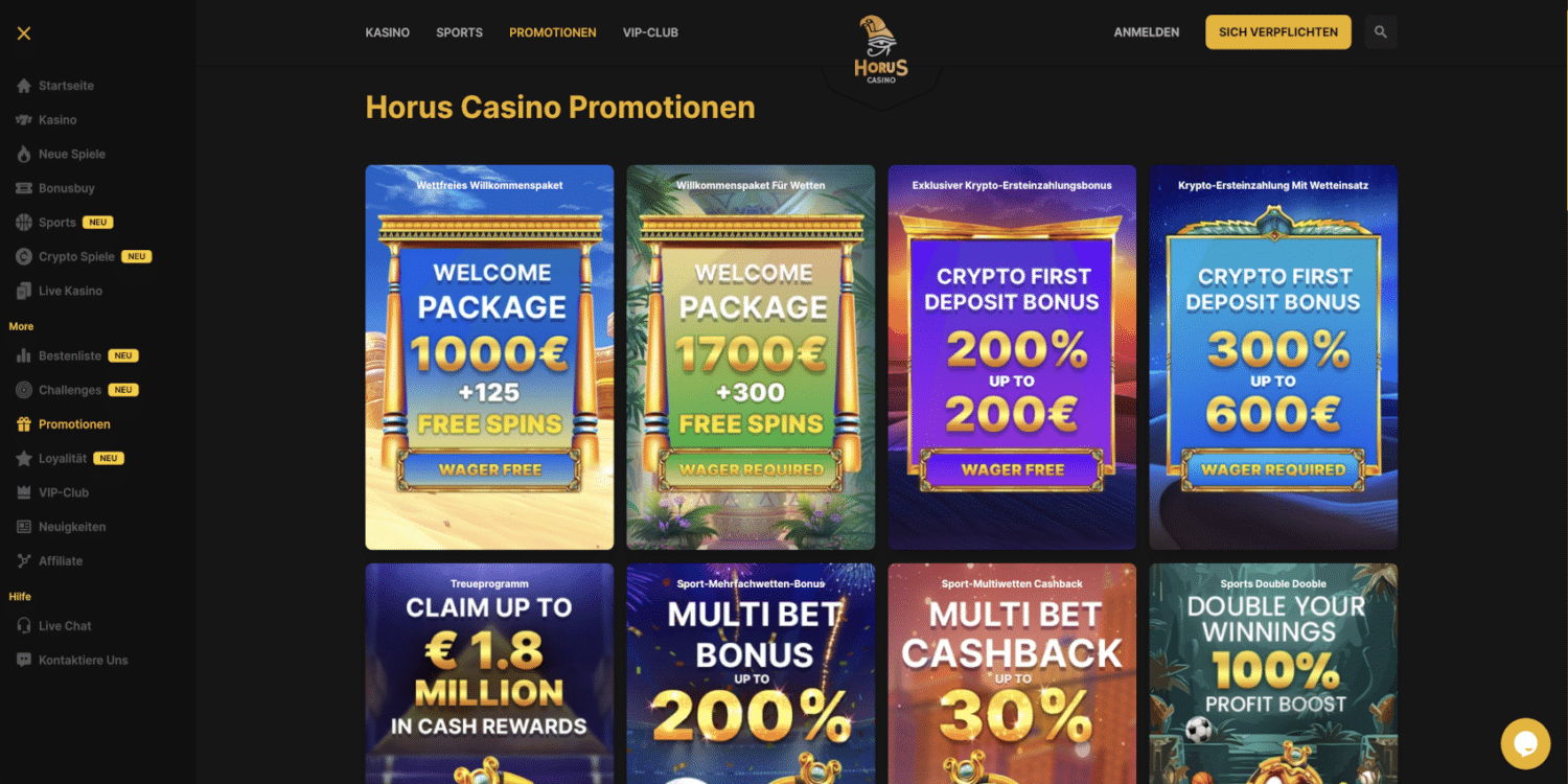 Das Horus Casino beeindruckt nicht nur mit seinem umfangreichen Spielangebot, sondern auch mit großzügigen Bonusaktionen. Diese göttlichen Geschenke machen den Horus Casino Test für Spieler besonders attraktiv.