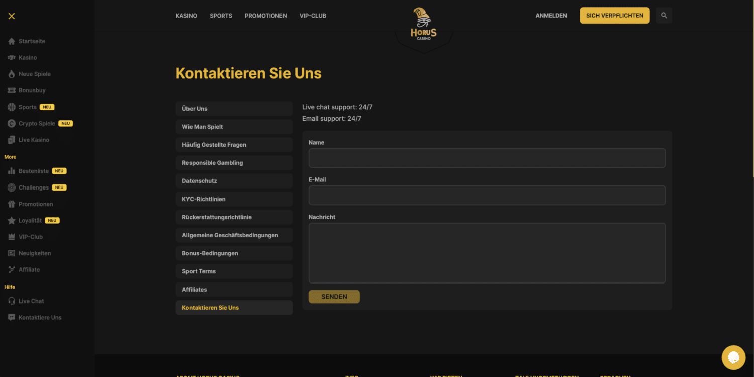 Das Horus Casino bietet seinen Spielern mehrere Wege, um mit dem Kundenservice in Verbindung zu treten: