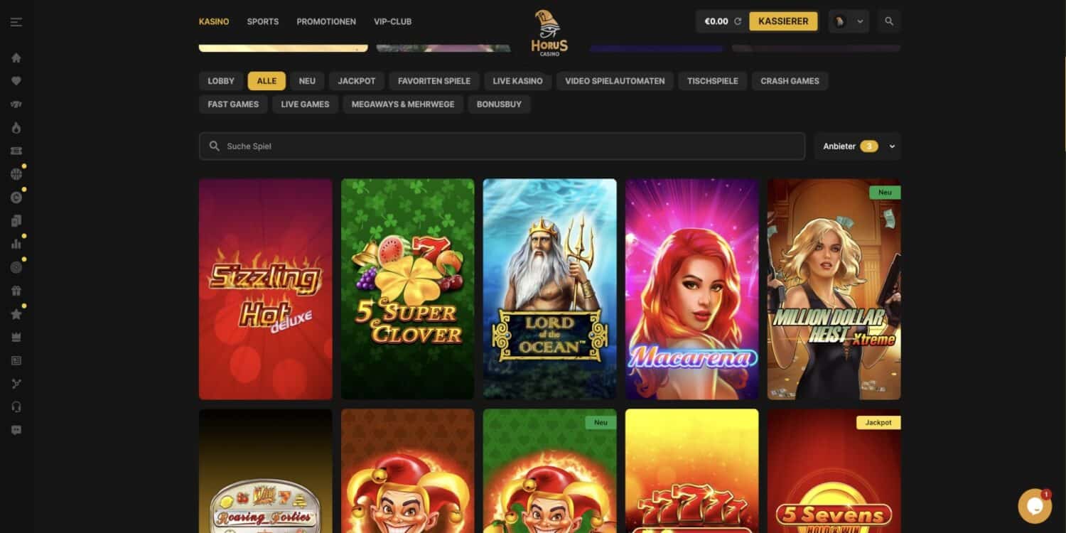 Die Slot-Auswahl im Horus Casino ist geradezu überwältigend. Du findest hier Spielautomaten zu allen erdenklichen Themen. Ob du dich für Früchte, Unterwasserwelten, Tiere, Natur, Horror oder den Wilden Westen begeisterst – hier wirst du fündig.