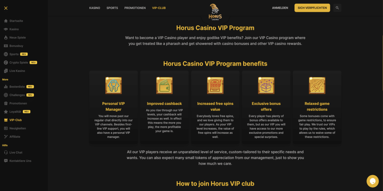 Darüber hinaus bietet das Horus Casino noch einige Besonderheiten: