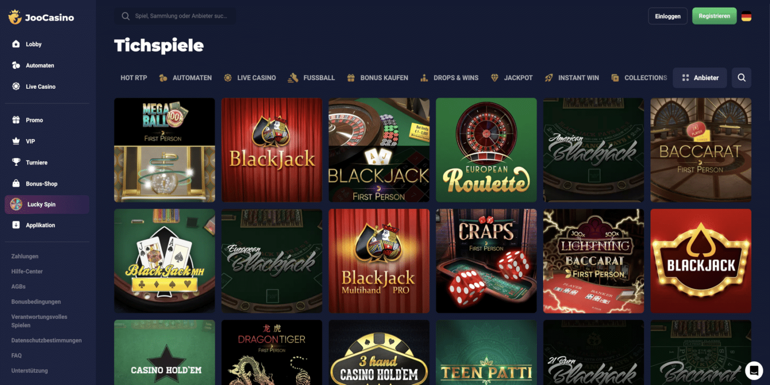 - Spielangebot: Das Joo Casino positioniert sich im oberen Segment des Marktes. Die Vielfalt und Qualität der Spiele entsprechen den höchsten Branchenstandards.