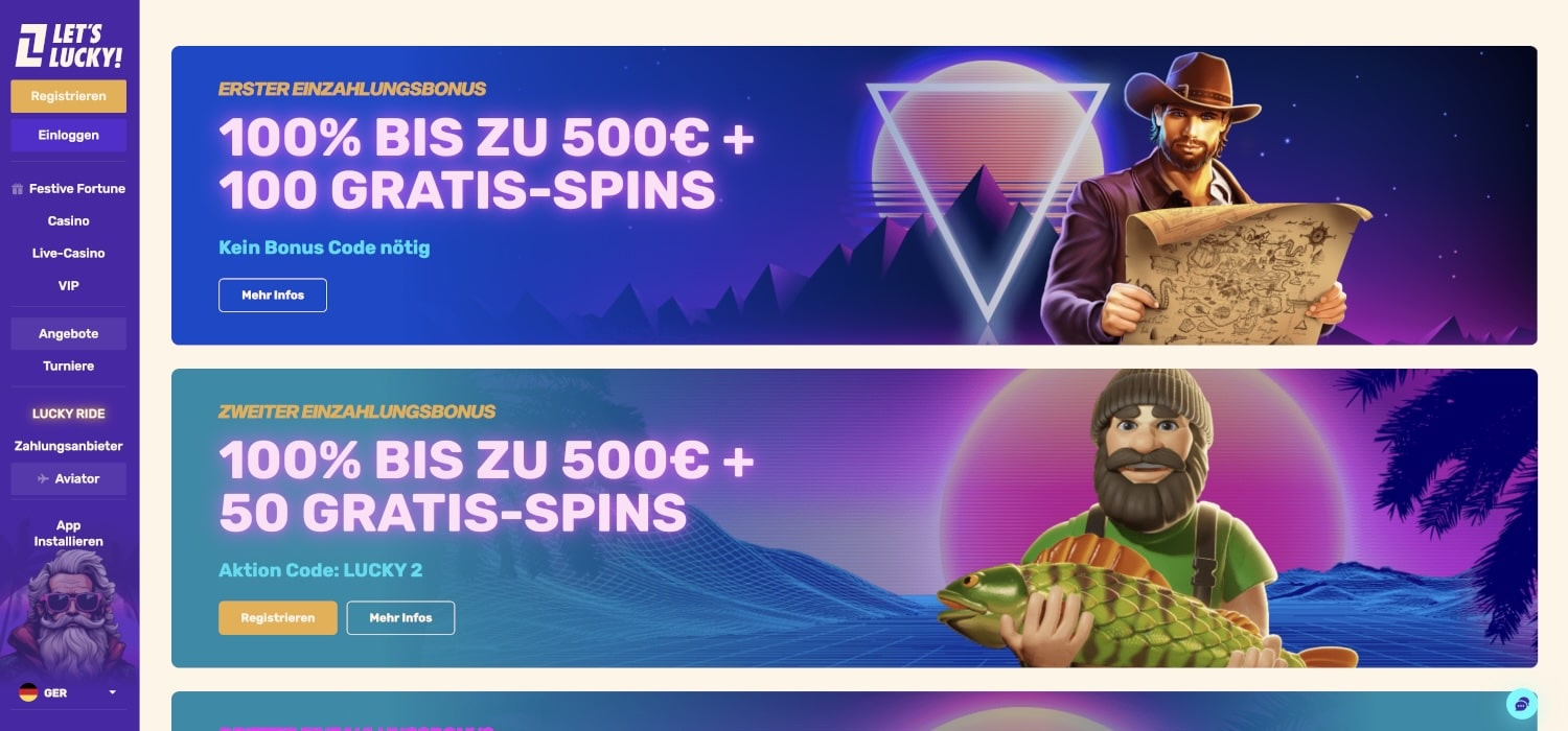 Unseren Erfahrungen zufolge scheitern die meisten Menschen daran. Viele möchten auch gar nicht an solchen Aktionen teilnehmen, weil der Schwierigkeitsgrad zu hoch ist und oft sogar Mindesteinsätze und -umsätze gefordert werden. Es ist in der Regel kein Problem, nicht mitmachen zu wollen: Es gibt im Let’s Lucky Casino keine Pflicht zur Teilnahme. Sie sollten jedoch beachten, dass die Teilnahme an einem Bonus die Kosten des Spielens im Casino nicht erhöht. Allerdings können Sie in der Spieleauswahl eingeschränkt sein und werden durch die Aktion zu zusätzlichen Einsätzen verleitet, sodass Sie möglicherweise mehr Geld ausgeben als beabsichtigt. Das Bonusangebot lässt vermutlich schon erahnen, dass es sich hier um Casino ohne Oasis handelt.