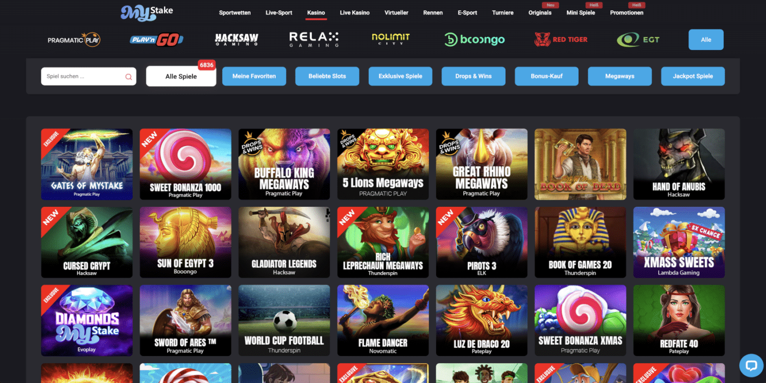 Ein herausragendes Merkmal von MyStake ist die enorme Spielauswahl. Mit über 6.500 Casinospielen bietet die Plattform eine der größten Sammlungen, die wir je in einem Online-Casino gesehen haben. Von klassischen Slots bis hin zu modernsten Live-Casino-Spielen – hier findet jeder Spieler etwas nach seinem Geschmack.