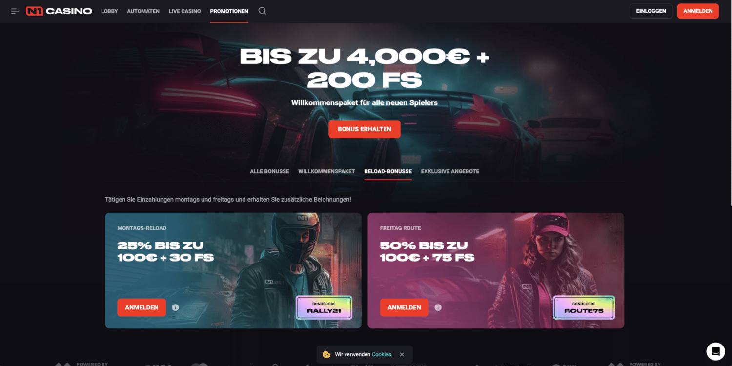 Zusätzlich zu den Reload-Boni bietet das N1 Casino weitere exklusive Angebote: