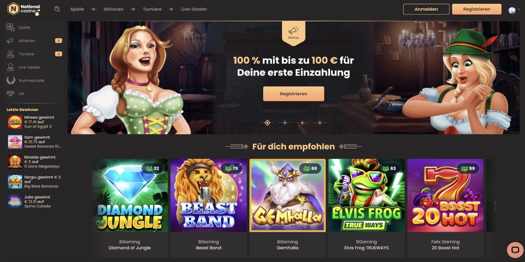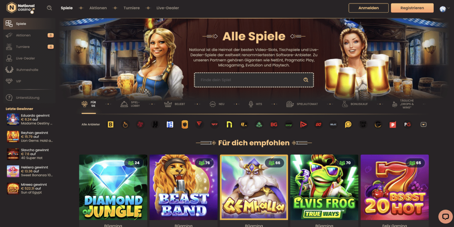 Das National Casino bietet eine Vielzahl von lukrativen Bonusangeboten, die sowohl Neukunden als auch treue Spieler begeistern. Von großzügigen Willkommensboni bis hin zu regelmäßigen Aktionen und einem exklusiven VIP-Programm – hier kommt jeder Spielertyp auf seine Kosten.