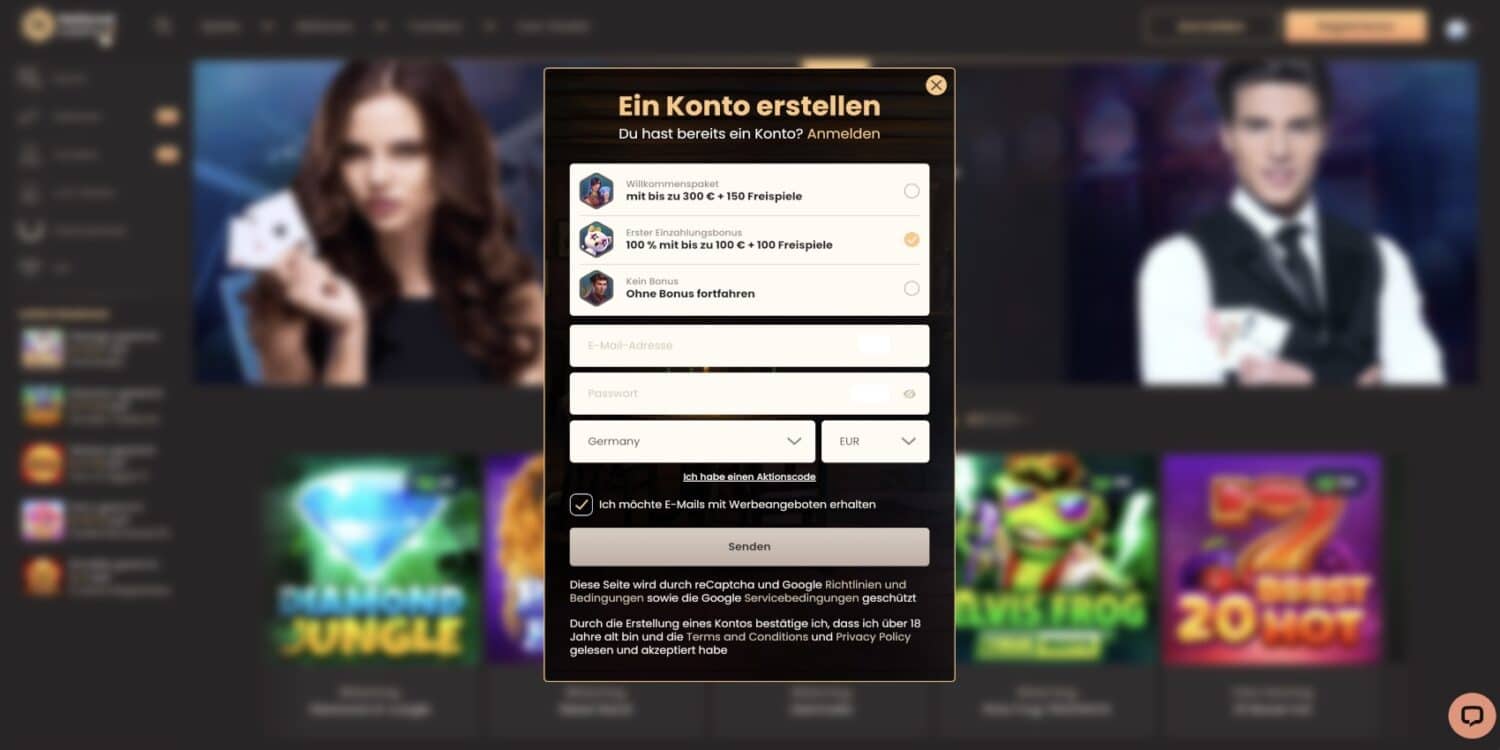 Dieser optimierte Prozess zeigt das Bestreben des Casinos, von Anfang an eine reibungslose und benutzerfreundliche Erfahrung zu bieten. Die Möglichkeit, den Willkommensbonus direkt bei der Registrierung anzunehmen oder abzulehnen, unterstreicht die Flexibilität und Transparenz des Angebots.