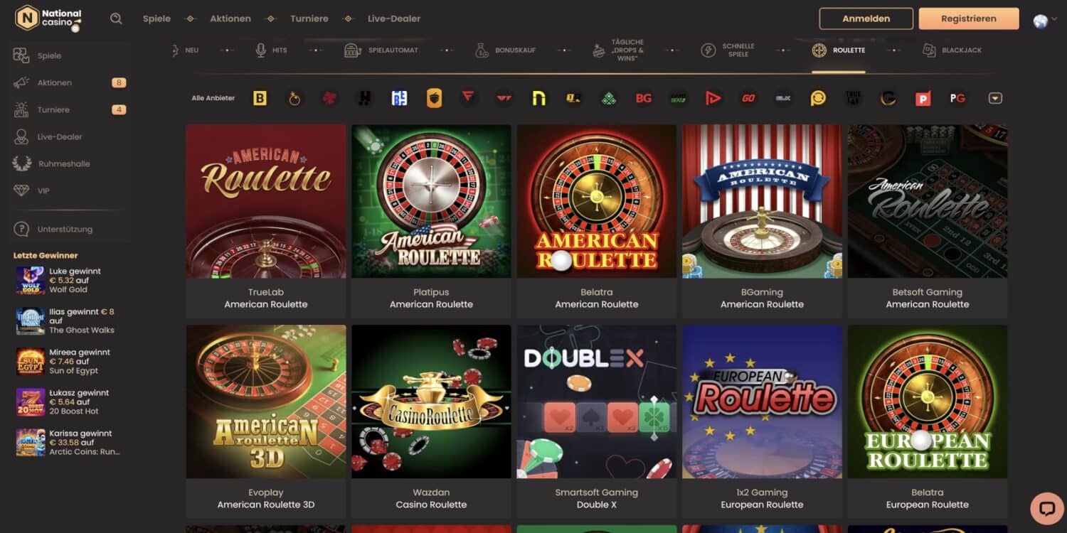 Insgesamt bietet das National Casino eine beeindruckende Spielvielfalt, die kaum Wünsche offen lässt. Ob du nun klassische Slots, moderne Videoslots, Live-Casino-Action oder schnelle Spielrunden suchst – hier wirst du fündig. Die fehlende Kategorisierung einiger Spieltypen wie Megaways oder Jackpots könnte die Navigation etwas erschweren, tut dem Gesamterlebnis aber keinen Abbruch.