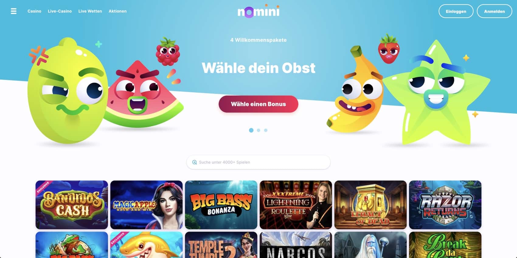 In den nächsten Abschnitten erfährst du alles über die Spielauswahl, den verlockenden Willkommensbonus und wie sicher dein Geld bei Nomini aufgehoben ist. Egal ob Slot-Fan oder Live Casino-Enthusiast – wir zeigen dir, ob sich ein Besuch für dich lohnt. Also schnall dich an und tauche mit uns ein in die fruchtige Welt des Nomini Casinos!