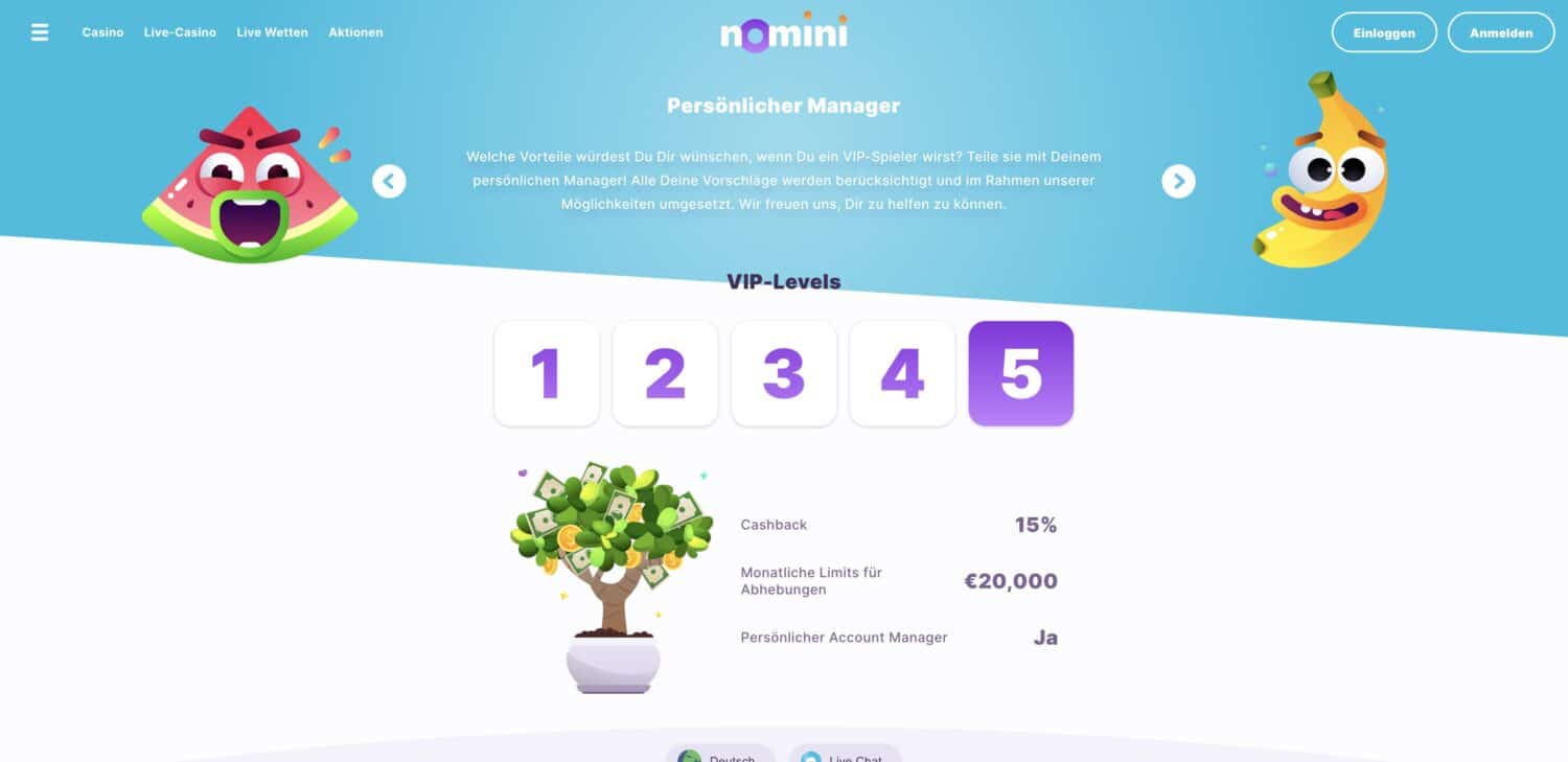 Treue zahlt sich aus! Das VIP-Programm von Nomini lässt dich die Früchte deiner Loyalität ernten: