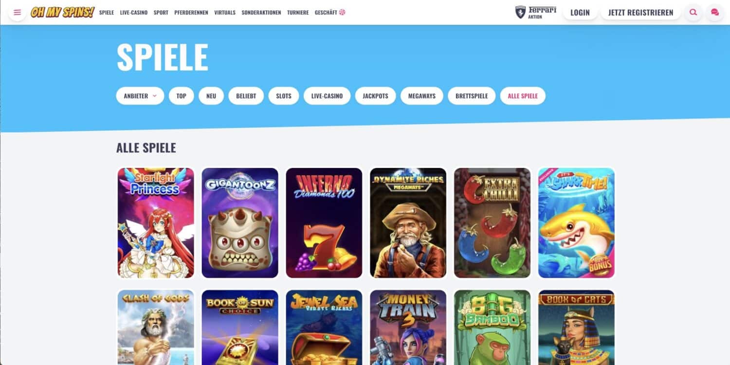 Unser OhMySpins Casino Test zeigt ein außergewöhnlich vielfältiges und hochwertiges Spielangebot. Mit seiner riesigen Auswahl an Spielen, exklusiven Titeln und innovativen Features setzt OhMySpins neue Maßstäbe in der Online-Casino-Branche. Ob Slot-Enthusiast, Tischspiel-Stratege oder Jackpot-Jäger – hier findet jeder Spielertyp sein perfektes Match.