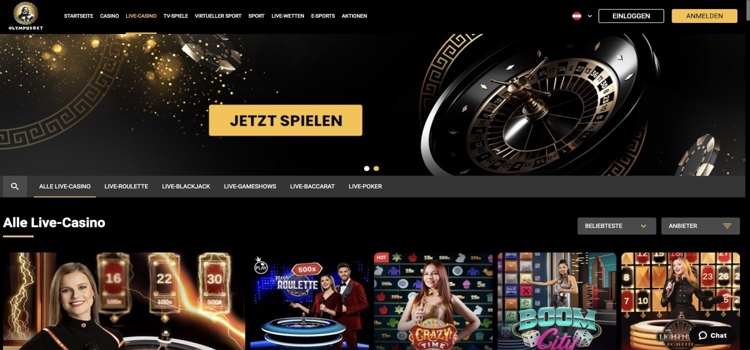 Bei dieser Frage orientiert sich das Olympusbet Casino am Angebot anderer, etablierter Casinos. So kommen diese heutzutage schlicht nicht mehr ohne ein Live Casino aus. Dennoch zeigen sich hier auch einige Unterschiede im direkten Vergleich. Während Spielshows bei anderen Anbietern eine immer größere Rolle spielen, sind diese im Olympusbet Casino nur bedingt vertreten. Unseren Erfahrungen nach gibt es weniger als 20 Spielshows. Abseits davon ist das Live Casino aber gut aufgestellt. Ob online Casino Roulette, Live online Casino Blackjack, Live Baccarat oder Live Poker – insgesamt erwarten Dich hier etwa 200 Spiele im Live Casino.