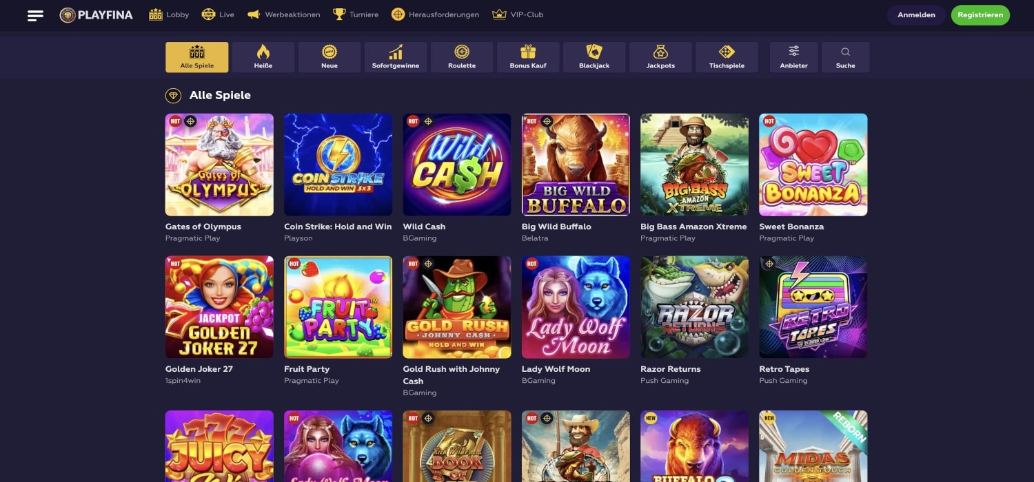 Die Spieleauswahl im Playfina Casino
