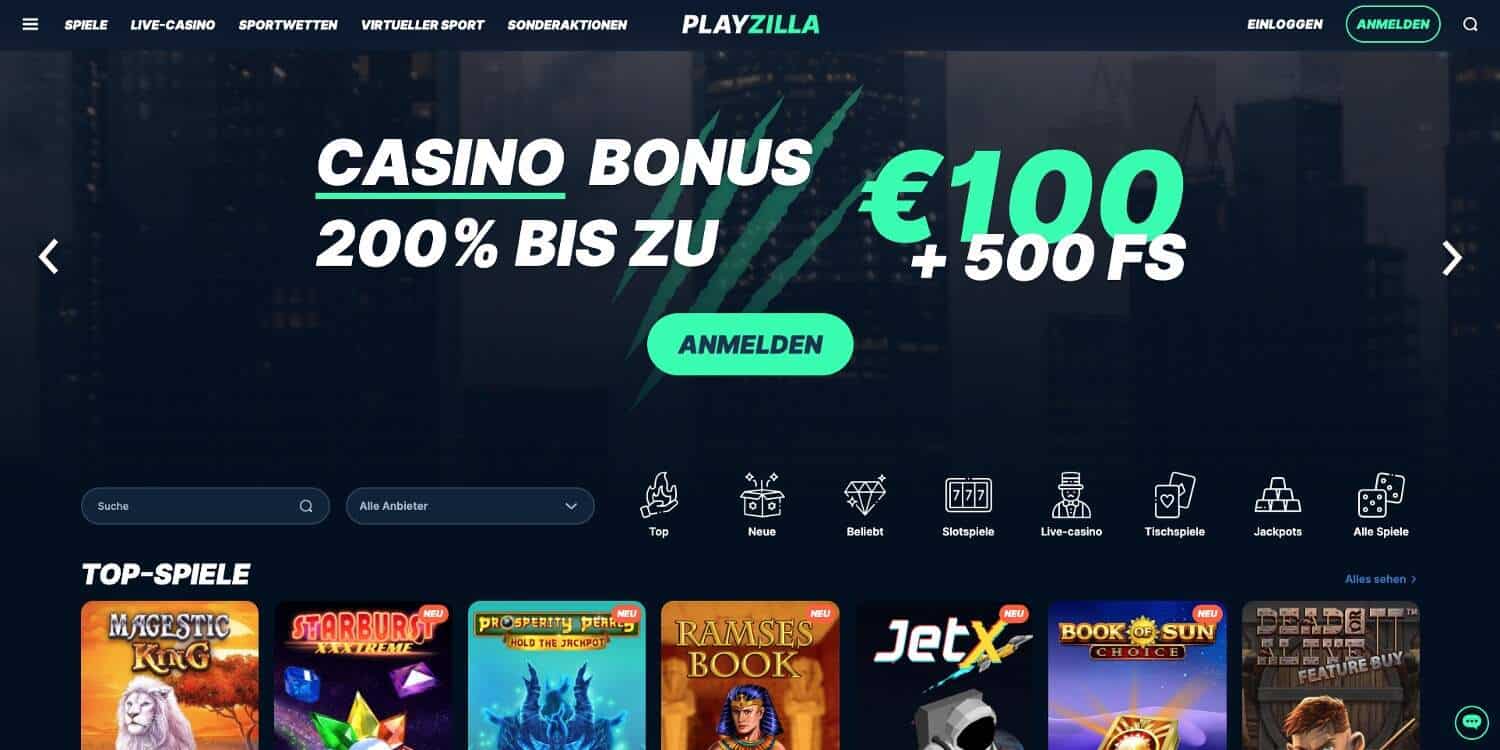 Das Playzilla Casino überzeugt als Echtgeld Casino, das vieles richtig macht. Die luxuriöse Gestaltung und die breite Palette an Spielen laden zum Entdecken ein. Hier findest Du alles von klassischen über neue bis hin zu Live-Casino-Spielen und sogar Sportwetten. Als Neuling im Casino kannst Du Dich auf einen attraktiven Playzilla Casino Bonus freuen. Zusätzliche Boni bieten finanzielle Vorteile und verbessern die Chancen auf Gewinne deutlich. Die Erfahrungsberichte sind durchweg positiv: Das Playzilla Casino hält für jeden Spieler das Richtige bereit und verspricht ein abenteuerliches Spielerlebnis voller Spaß, ohne die Einschränkung durch eine 5-Sekunden-Regel. Mehr Details und persönliche Eindrücke findest Du im detaillierten Erfahrungsbericht.