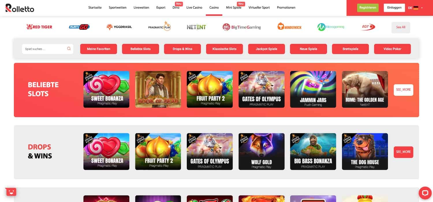 In Sachen Echtgeldspiel gibt es keine beliebteren Spiele wie Slots und aus diesem Grund findet man auch unzählige bei Rolletto. Die stammen von Herstellern wie beispielsweise Pragmatic Play, Microgaming, EGT, Booongo oder Kalamba und beschäftigen sich mit den unterschiedlichsten Themen. Beliebte Spielautomaten sind zum Beispiel: