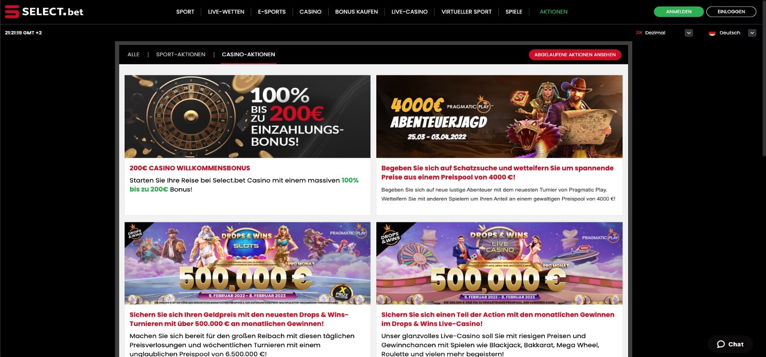 Select.Bet Casino Bonus – bis zu 200 Euro Bonusguthaben sind drin