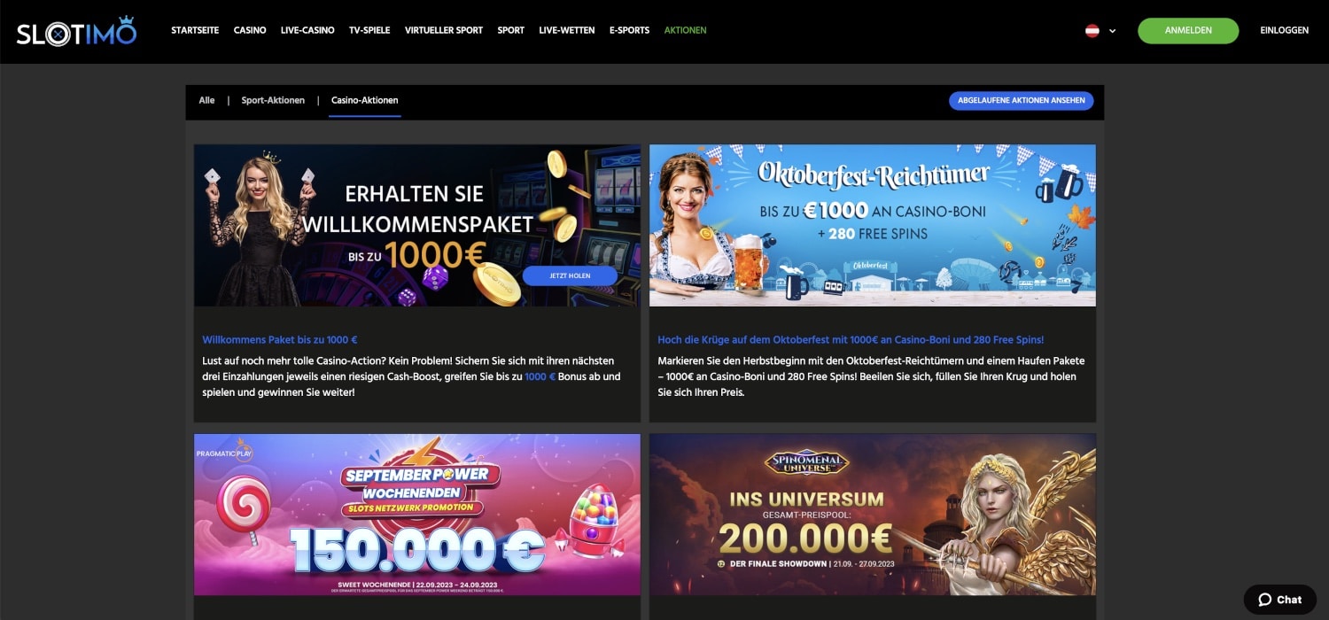 Neben dem monatlichen Bonus bietet Slotimo auch zeitlich begrenzte Aktionen an. Aktuell sind das: