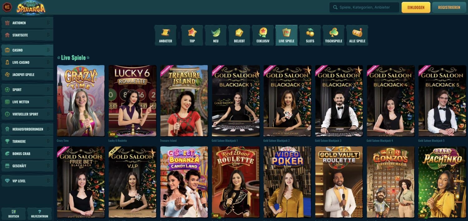 Beliebt sind natürlich auch die verschiedenen Spielversionen des Klassikers Live Casino Blackjack. Konkret dürfen sich die Gambler hier etwa über Free Bet Blackjack, ONE Backjack, ONE Blackjack, Lightning Blackjack oder Blackjack Grand VIP freuen. Laut der Plattform gibt es sogar mehrere Spielversionen, die exklusiv für Spinanga verfügbar sind.