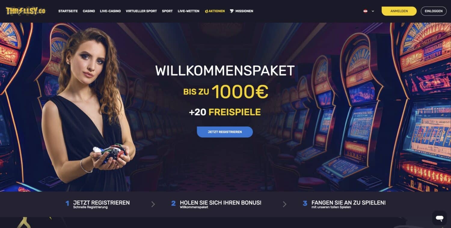 Das mehrstufige Willkommensbonus-Paket mit bis zu 1.000€ und 20 Freispielen bietet Neukunden einen attraktiven Einstieg, während Stammkunden von wöchentlichen Boni und einem exklusiven VIP-Programm profitieren können. Die Einzahlungs- und Auszahlungsmöglichkeiten sind vielfältig und decken klassische Methoden wie Kreditkarten und Banküberweisungen ebenso ab wie moderne E-Wallets und Kryptowährungen. Der rund um die Uhr erreichbare Kundenservice reagiert schnell und kompetent auf Anfragen, was das Gesamterlebnis abrundet. Insgesamt präsentiert sich das Thrillsy Casino als zuverlässiger und umfassender Anbieter, der sowohl Einsteigern als auch erfahrenen Spielern ein spannendes und sicheres Spielumfeld bietet.