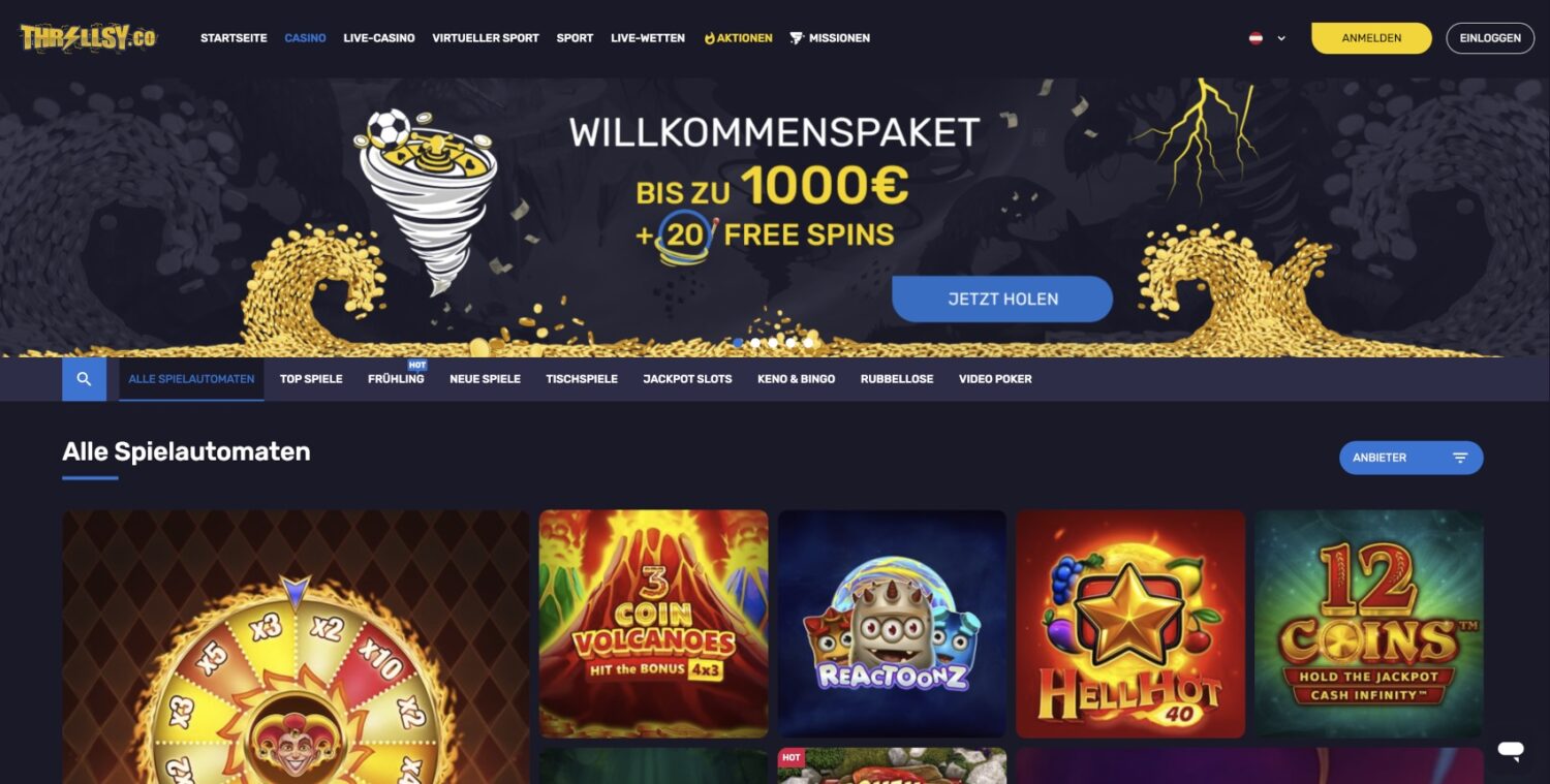 Das Thrillsy Casino überzeugt mit einem beeindruckenden Spieleangebot von über 7.000 verschiedenen Titeln, die für jeden Geschmack und jedes Spielniveau etwas bieten. Die Zusammenarbeit mit renommierten Softwareentwicklern wie Pragmatic Play, Evolution, NetEnt, Play’n GO, Relax Gaming, Yggdrasil, Nolimit City, Red Tiger, Gamomat und Novoline garantiert nicht nur Quantität, sondern auch höchste Qualität. Diese Vielfalt sorgt dafür, dass du immer neue und spannende Spiele entdecken kannst, ohne dich zu langweilen.