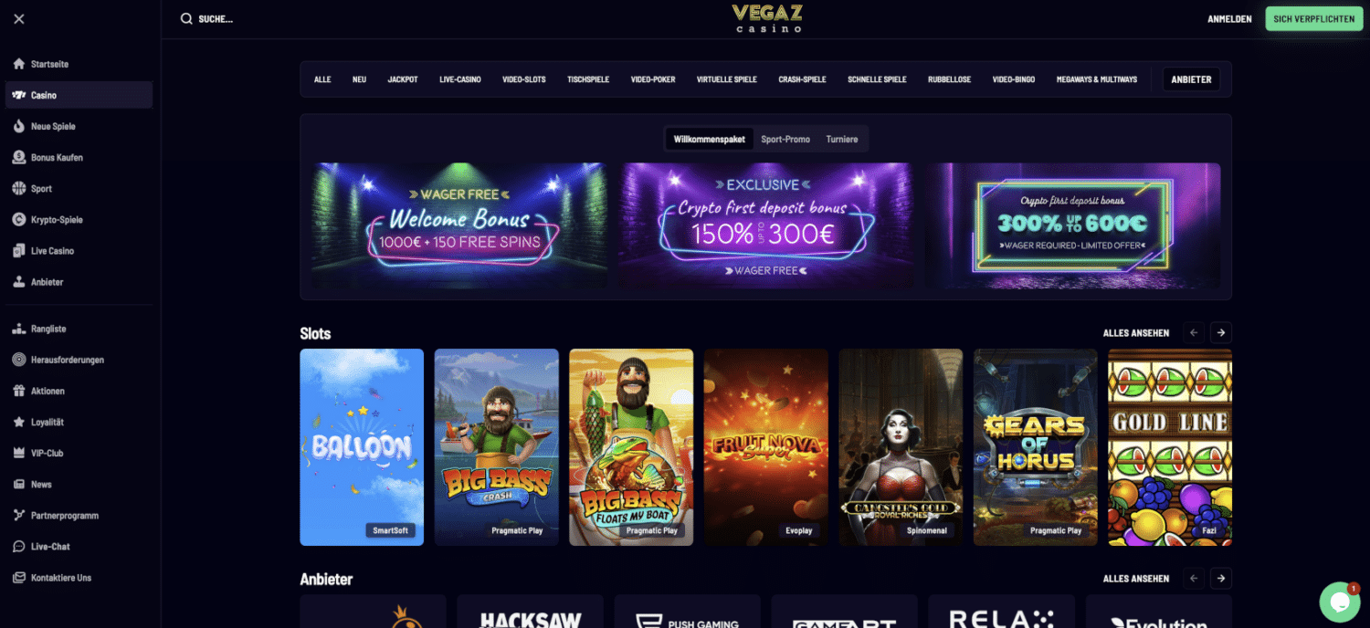 Das Vegaz Casino überzeugt als moderne Online-Spielplattform mit einem umfangreichen Angebot von über 11.500 Spielen. Dank der Kooperation mit renommierten Entwicklern findest du hier alles von klassischen Slots über vielfältige Tischspiele bis hin zu einem erstklassigen Live-Casino. Außerdem bietet das seriöse Echtgeld Casino eine spezielle Sektion für Kryptospiele, damit auch moderne Zahlungsmittel optimal genutzt werden können. Da die Benutzeroberfläche intuitiv gestaltet ist, navigieren selbst Neueinsteiger problemlos durch das Angebot.