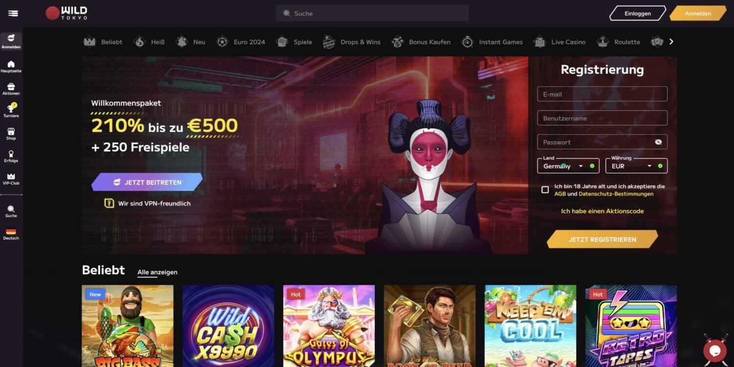 Die Registrierung beim Wild Tokyo Casino gestaltet sich erfreulich unkompliziert und du schließt sie in wenigen Minuten ab. Der Prozess beginnt mit einem Klick auf den „Anmelden“-Button, woraufhin sich ein übersichtliches Registrierungsformular öffnet. Hier gibst du zunächst deine E-Mail-Adresse, einen Benutzernamen deiner Wahl und ein sicheres Passwort ein. Anschließend wählst du dein Land aus und legst fest, in welcher Währung du spielen möchtest. Die verfügbaren Währungsoptionen umfassen Euro, US-Dollar und verschiedene Kryptowährungen, sodass für jeden Spieler die passende Option bereitsteht.