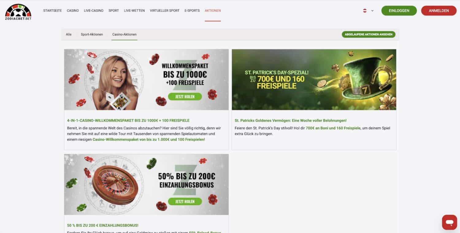 Bonusangebote und Promotionen im ZodiacBet Casino