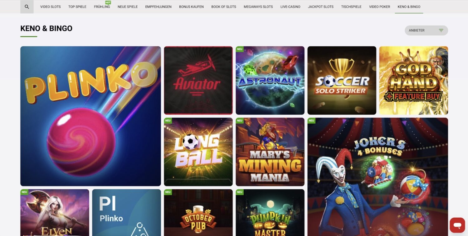 Außerdem findest du in dieser Kategorie Keno, Bingo und Rubbelkarten. Diese Spiele bieten eine willkommene Abwechslung zum normalen Casino-Angebot. Die Gewinnchancen und Spielprinzipien unterscheiden sich von den klassischen Casino-Spielen. Besonders die Rubbelkarten erfreuen sich großer Beliebtheit, da sie einfach zu spielen sind und dennoch spannende Gewinne ermöglichen können.